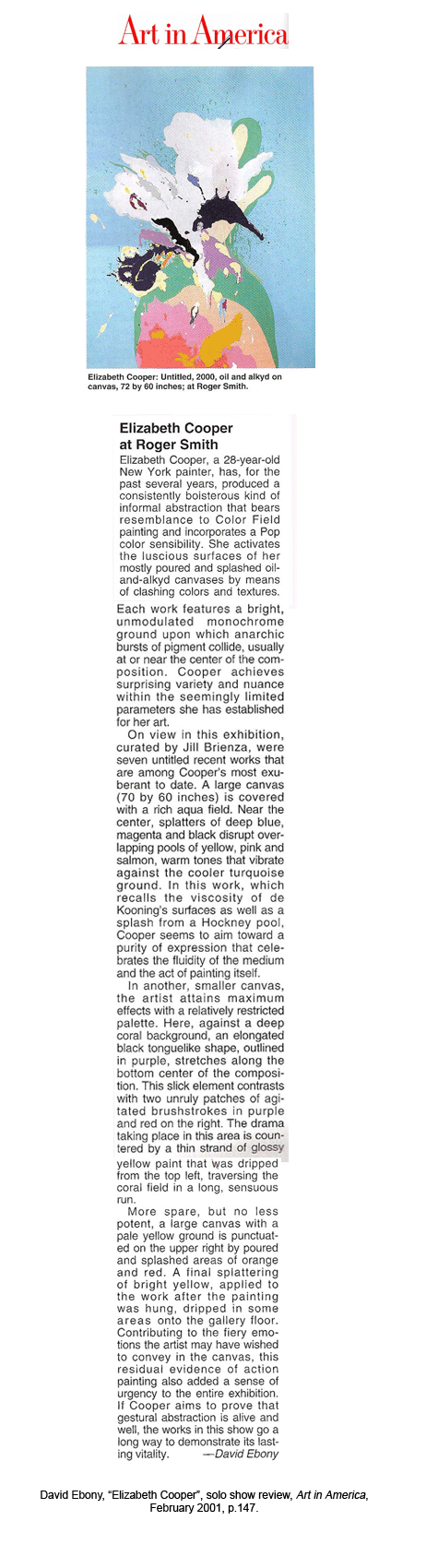 James Kalm, "Elizabeth Cooper ", The Brooklyn Rail, July/August 2006, pg 31.